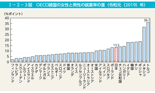 OECD諸国男女就業率の差